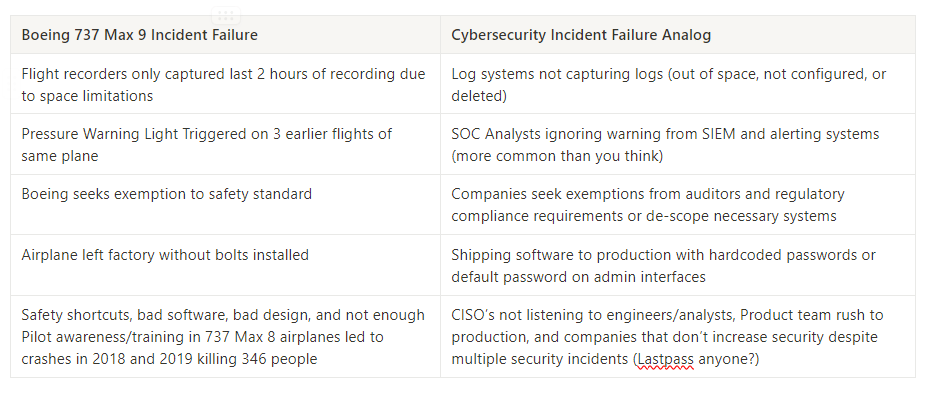 All 737 Max 9 jets were grounded by the FAA (we don’t have an FAA in cybersecurity)