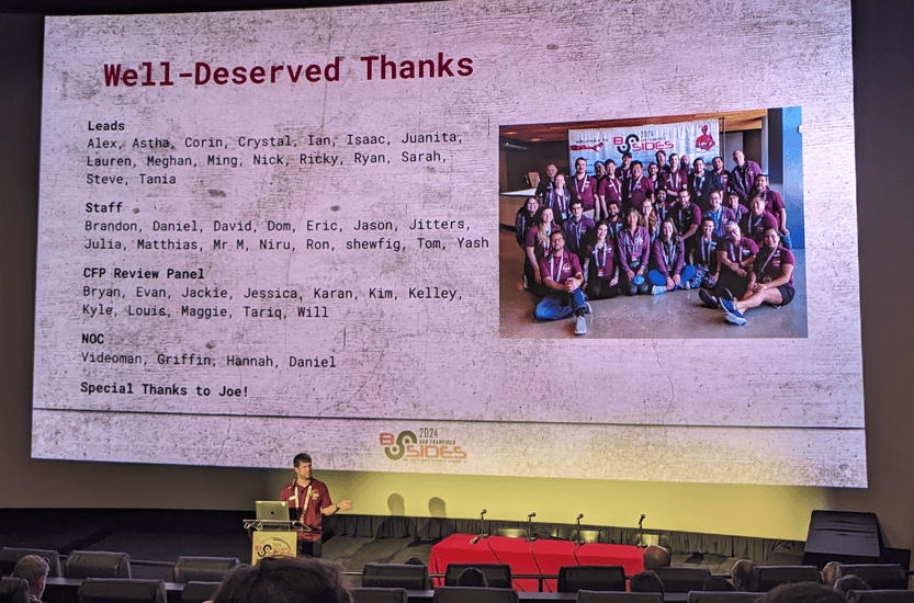 BSidesSF is an amazing event. It comes and goes so quickly, but it just has a special place in my heart. It’s the place where I first played a CTF and made some lifelong friends in the industry.