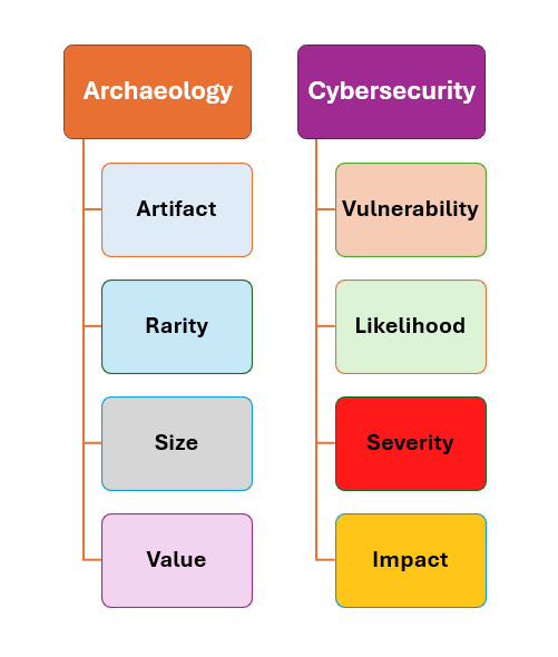 These gems vary in size (severity), rarity (exploitability), and value (impact). Not only that, but just like archaeological artifacts, they will vary in impact, severity, and exploitability based on their environment (company size, industry, type of data) and geo-location (internal, external, accessibility, etc).